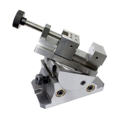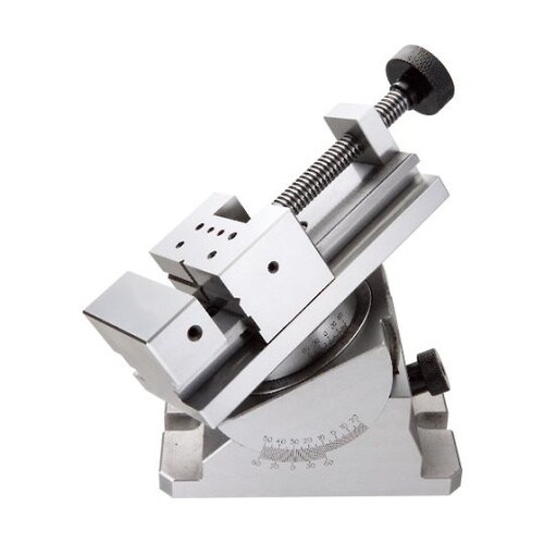 バイスを360度旋回、45度傾斜させることができるため複雑な切削・研削・彫刻加工などに活用できます。V溝付き口金のため、丸棒のクランプに便利です。
