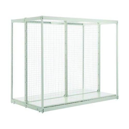 背面がネットタイプの両面仕様の重量物陳列用什器です。オプションの棚板を設置することで商品陳列や物品の保管ができ、省スペース化を実現できます。ボリューム陳列に対応する安定感のある前柱付です。店舗、売場の |