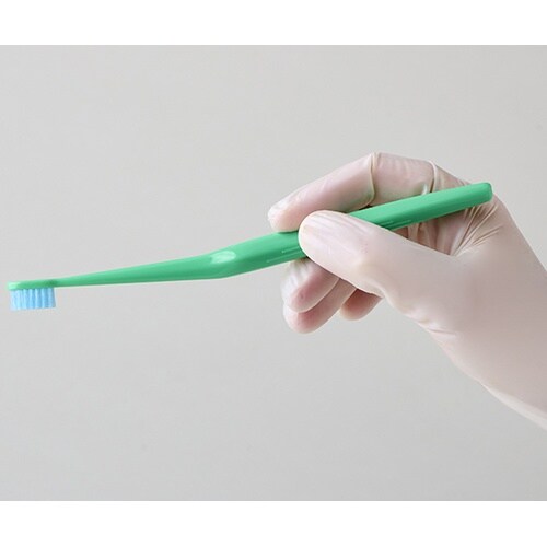 介助しやすさにこだわった歯ブラシです。口腔内にフィットする外向きカーブで、歯により沿ってラクに磨けます。開口困難な方のお口でも隙間からスルッと入り込む形状です。ペングリップしやすい六角形ハンドルです。 |