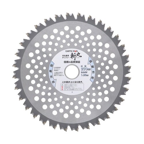 一般草刈・畦刈・笹・下刈用3種類の刃を搭載することで、雑草の刈り漏れを防ぐ切れ味超特化型チップガードが小石などを弾き次のチップを守るためチップがかけにくい。刃先部に耐摩耗・耐衝撃用のタングステンカーバ |