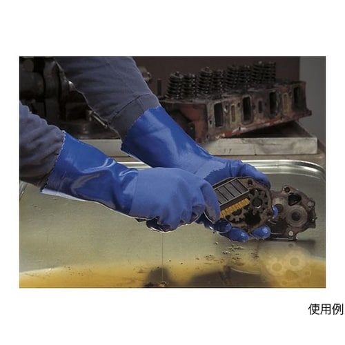 耐油ビニローブよりも5cm長いロングタイプです。特殊配合の塩化ビニールを全面にコーティングしているため、耐油性に優れています。裏布は編み目が細かく縫い合わせのない、独自の13ゲージ・シームレス編み手袋 |