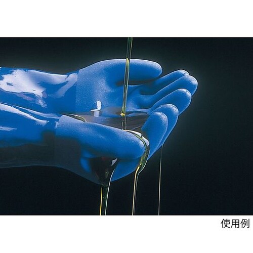 耐油ビニローブよりも5cm長いロングタイプです。特殊配合の塩化ビニールを全面にコーティングしているため、耐油性に優れています。裏布は編み目が細かく縫い合わせのない、独自の13ゲージ・シームレス編み手袋