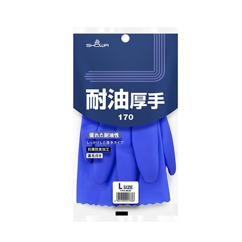 特殊配合の塩化ビニールを採用しているため、耐油性に優れています。耐久性のある丈夫な厚手タイプです。傷つきやすい指先は、2度漬け加工で強化しています。独自のパターンにより、高いスベリ止め効果を発揮します |