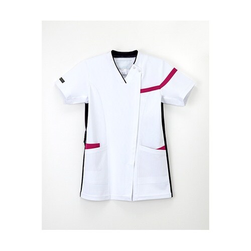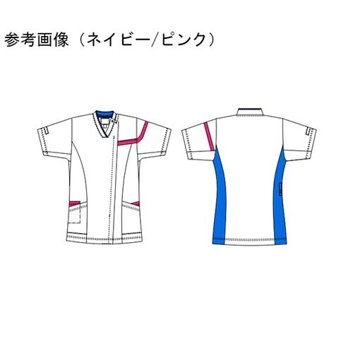 プロファンクション機能を搭載した男女兼用の前開きスクラブです。胸から袖に入ったラインはチームの結束を表現しています。また標識性を高めます。右腰のダブルポケットの内側はスマートフォンを収納できます。両脇