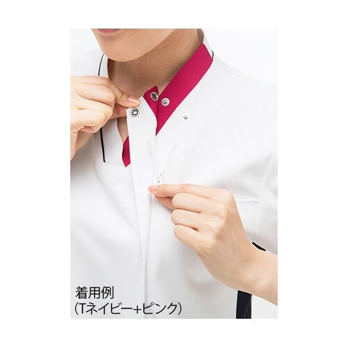 アシンメトリーな衿元のカラーが元気な印象を与えます。男女兼用ですので男女で同じ商品を着用でき統一感を表現できます。透け防止フルダルポリエステル糸使いにより、極めて高い透け防止効果があります。極めて高い |