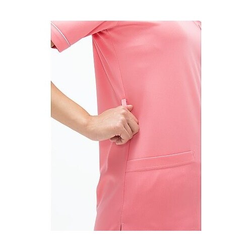 男女兼用ですので性別に関係なく同じデザインを着用でき統一感を表現できます。着易い前ファスナー開きのスクラブです。着用時のわずらわしさが解消です。さらさらタッチのポリエステル織物素材です。濃色でも他のポ
