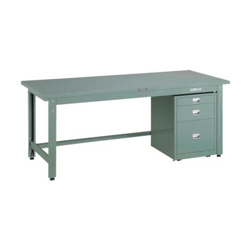 中荷重作業台(800kg)GW型 1500X750XH740 3段キャビネット付 グリーン色 GWS−1575UDC111