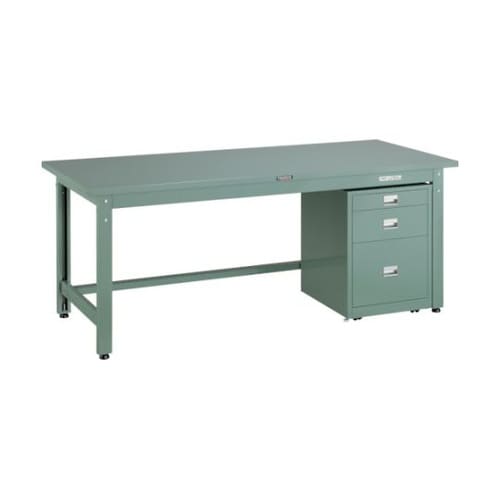 中荷重作業台(800kg)GW型 1800X750XH740 3段キャビネット付 グリーン色 GWS−1875UDC111