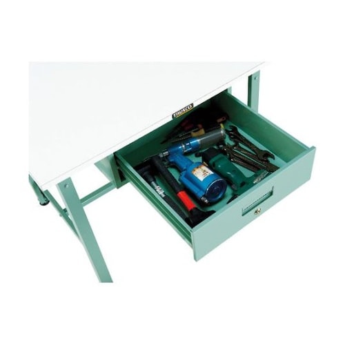 深めの引出しが付いており、ゆとりのある収納・管理が可能です。引出し取り付け位置は作業者の使い勝手に応じて自由に設定できます。主要部が溶接構造のため、丈夫で優れた耐久性を持っています。付属の工具1本で簡 |