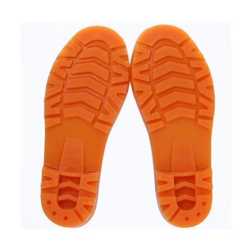 鉄の先芯が入っているため足の指を守ります。底材、アッパー材ともに耐油性に優れたPVCを使用しています。インジェクション製法のため、土木作業などのハードな現場に耐える丈夫な長靴です。