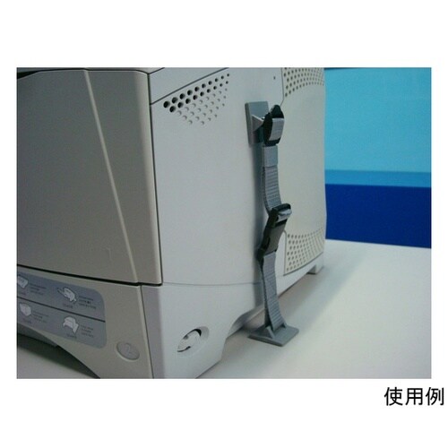 事務所などで使用されている卓上プリンターの移動−落下を防止する製品です。ベルトの両端に接続された接着パッド付きフックの一方を卓上に、もう一方を卓プリンターの側面に接着固定して使用します。接着固定なので |