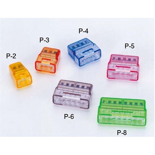 電線を二つのバネで保持・信頼性抜群電線と導電部との接触面積が大きい一目で分かるサイズ別色分け耐熱性ポリカボネート(120℃)採用自己消火性(UL94−V2) |