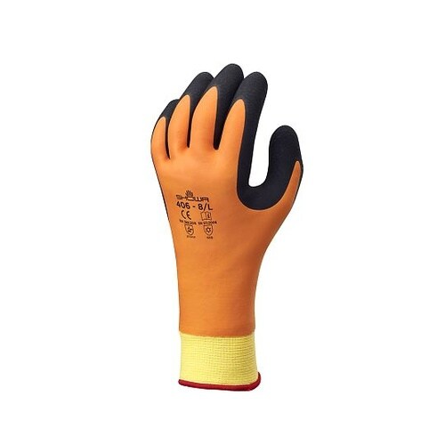 手袋内部にファンシーヤーンを採用することにより、保温性を高めています。発泡天然ゴムを手首までコーティングした、柔軟性とフィット感に優れたフルコート手袋です。手のひらには高いスベリ止め効果を発揮する特殊 |