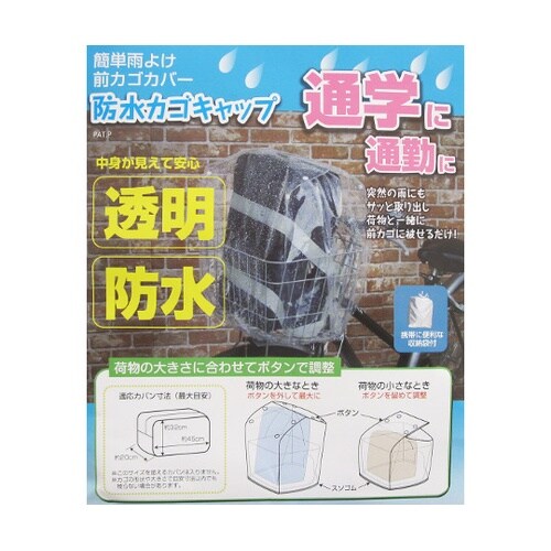 突然の雨にもサッと取り出し荷物と一緒に前カゴに被せるだけ、荷物の大きさに合わせてボタンで調整できる防水カゴキャップです。 |