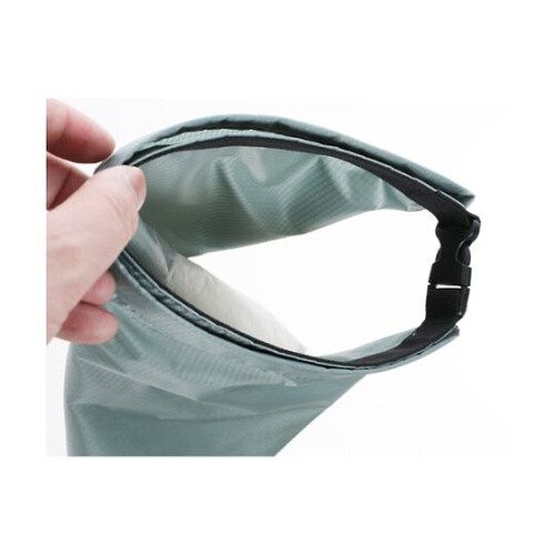 中に濡れたもの、あるいは濡らしたくないものを入れて、上部を2−3回巻き、左右のバックルを差し込み使用します。防水生地を使用し、縫い目にシームテープ処理を施しているので水が漏れません。ブーツが入る程度の |