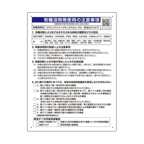 ユニット 有機溶剤等使用の注意事項 「エチレングリコールモノエチルエーテル」 A056-3960
