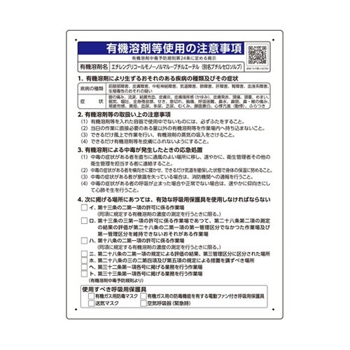 ユニット 有機溶剤等使用の注意事項 「エチレングリコールモノーノルマルーブチル」 A056-3962