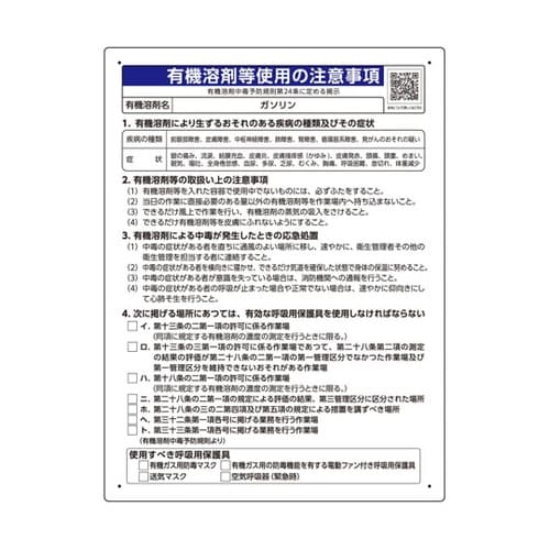 ユニット 有機溶剤等使用の注意事項 「ガソリン」 A056-3965