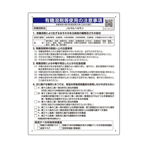 ユニット 有機溶剤等使用の注意事項 「ノルマルヘキサン」 A056-3976