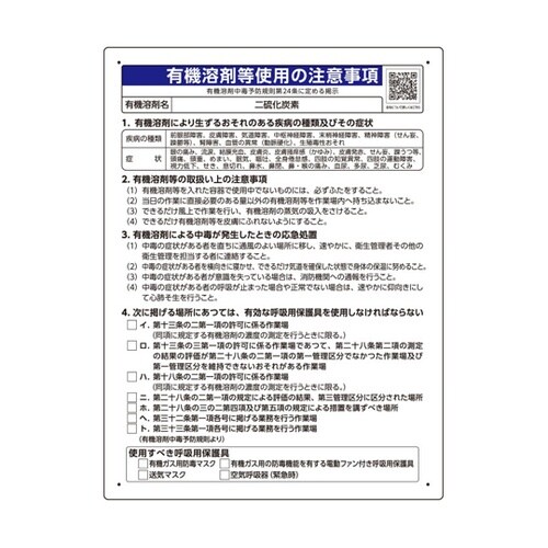 ユニット 有機溶剤等使用の注意事項 「二硫化炭素」 A056-3991