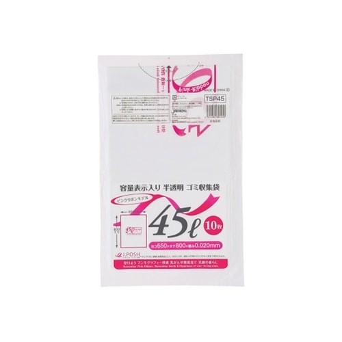 ジャパックス 容量表示入ポリ袋45L ピンクリボンモデル HD+meta 白半透明 0.02mm 1ケース(10枚×60冊入) A056-4028