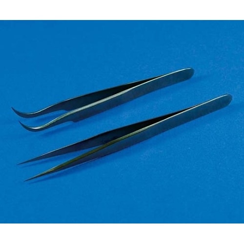 先端が非常に細く、細かな作業をする際に適したツイーザーです。マイクロ F コーティングを行っている為、従来のツイーザーの先端能力を生かしたままマイクロF コーティングの特性(高硬度・薄塗り・非粘着・長 |