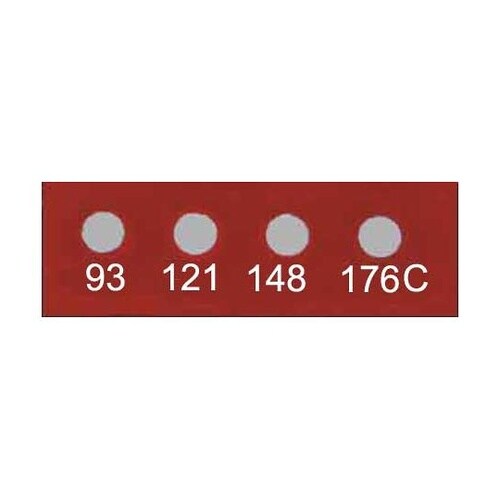 貼っておくだけで表面温度を記録水,ガス,薬品などの影響を受けない不可逆なので確実な永久記録常時監視することなく温度把握ミニパーツなので接近しにくい箇所の測定が容易半導体のウエハ・LCD・ICなどの微細 |