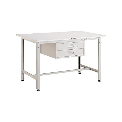 仕分けに便利な2段引出し付です。引出しは使い勝手に応じて使いやすい位置に取り付けできます。主要部が溶接構造のため、耐久性に優れています。ポリ化粧天板を使用し、表面は滑らかで、ソフトな光沢があり清潔感を |