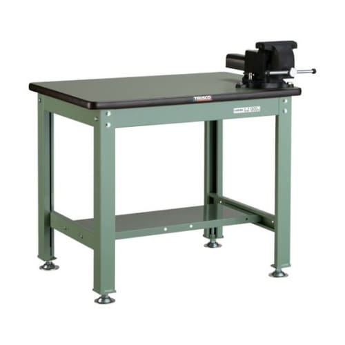 バイスでワークを固定して作業ができます。主要部溶接構造で耐久性に優れています。脚部はグリーン色です。アジャスターとの交換により簡単にキャスター付にシステムアップが可能です。