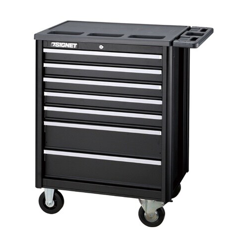 ABS樹脂製多目的ワークトップ付。ボルト・ナット等小さいものを整理・整頓するのに便利な個別スペース。キャスターは5”で、2個自在(ブレーキ付)・2個固定。スチール製コーナープロテクター(4箇所)で、本 |