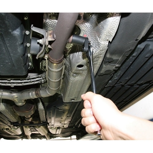 全長が短く、狭い場所でも使用可能です。駆動部分がオフセットしているため、障害物が回避できます。差込角9.5sq.の駆動工具が使用できます。口径部には応力の集中を防ぎ、ボルト・ナットにやさしいパワーフィ |