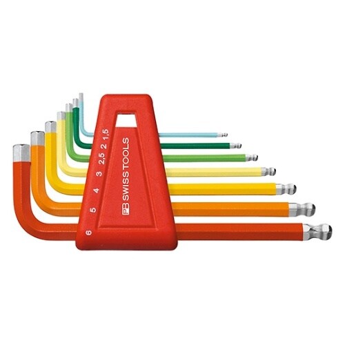 PBレインボーレンチはそれぞれのカラーにより使用寸法を一目で判別できるようにしました。また、特殊パウダーコートにより、耐錆性があります。エッジは軽く隅取りしてあり、レンチをたやすくネジ穴に差し込むこと |