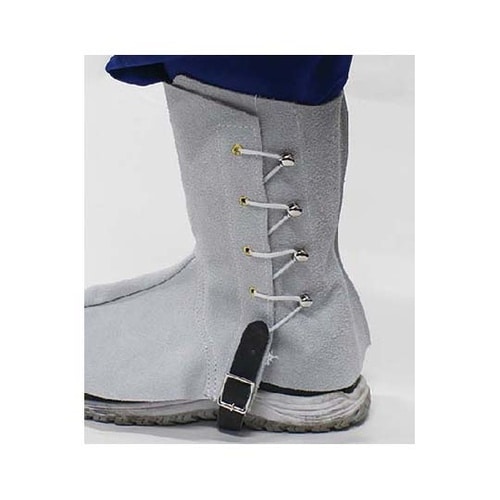 燃えにくく丈夫な床皮製。脛から足の甲まで防護します。ゴム紐止めタイプ |