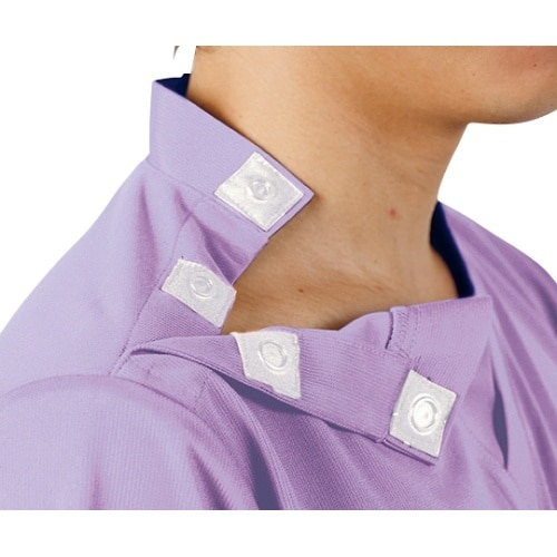女性の着用を考慮してSサイズは肩巾、ウエストをやや狭めにしています。ニット素材で動きやすく、カラーが選べる快適ウェア。上品なカラーも加わった女性にも着やすいスクラブ。