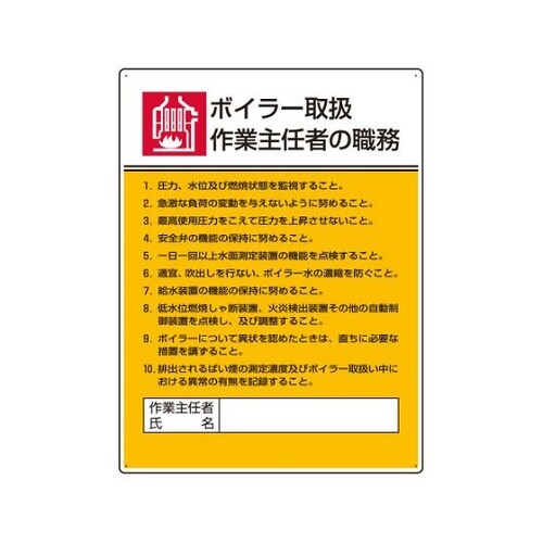 ユニット 作業主任者職務板 ボイラー取扱作業作業主任者の職務 A056-6735