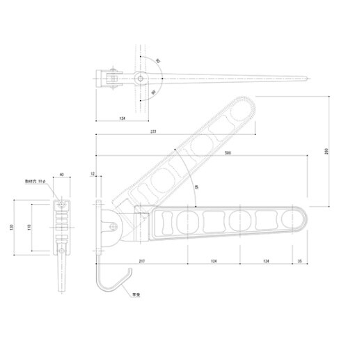 物干金物 バルコニー用 横収納タイプ ステンカラー
