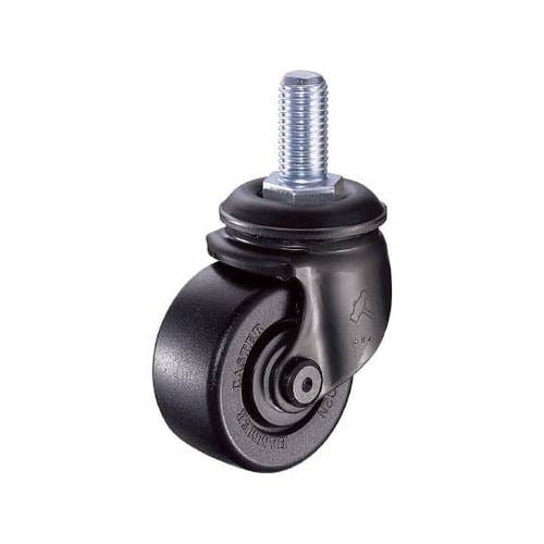 車輪には特殊ナイロンを採用しているため、重荷重で長時間にわたり固定しても荷重によるゆがみは発生しません。ねじ込み・低床・重荷重が必要な機器に。 |