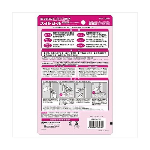 屋内でも屋外でも住まいのあらゆるひび割れを補修できます。汚れが付着しにくい強力な抗菌・防カビ性、耐薬品性、耐候性、優れた接着性など多くの特長を持つ超多用途シーリング材です。無溶剤なので気になる臭いもな |