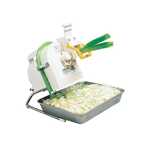 薬味切りと、はす切りが一台でできる便利なネギ切り機本体側に刃物が無いので、安全で手早く掃除ができる。(カバーと刃物が一体設計) |