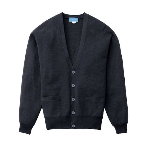 抗ピル素材を使用したメンズカーディガン。衿:V衿袖:セットイン袖口:二重編両サイドポケット付