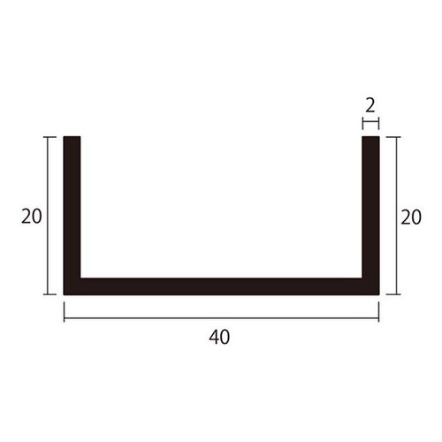 アルミチャンネル 2m 2.0×40×20mm シルバー 2本組