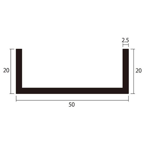 アルミチャンネル 1m 2.5×50×20mm シルバー 4本組
