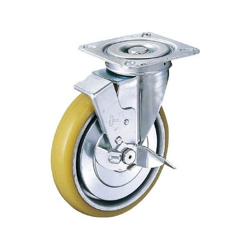 荷重に対する抵抗力が大きく、旋回もスムーズな高品質な大型キャスターです。取り付け座が大きく機械の移動や重量物搬送用として多く利用されます。重量物運搬用として