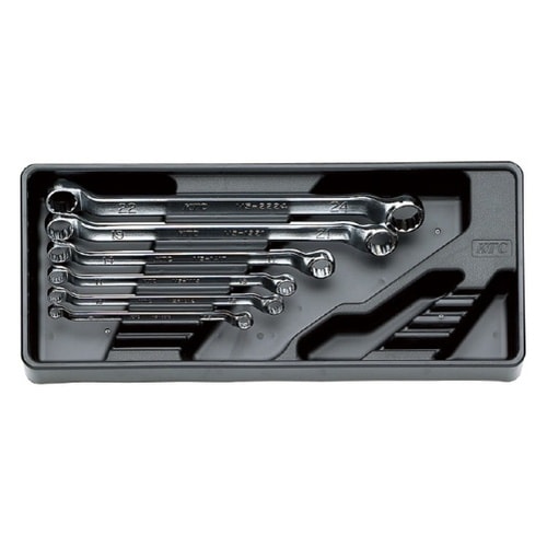 12角タイプです。樹脂成形トレイ付めがねレンチ6本組セットです。樹脂成形トレイはメタルケースEKB−2に入る大きさに設定されています。 |