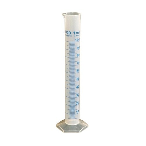 耐薬性のPP製です。ガラス製と違い破損の恐れが少ないです。目盛りがプリントなので見やすくなっています。 |