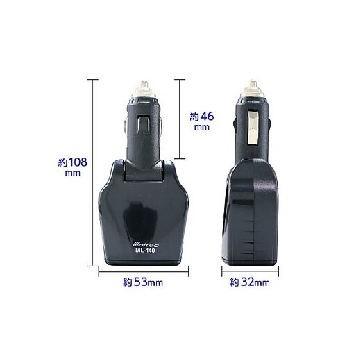 大自工業 バッテリーチェッカー USBコンセント付 DC12V用 デジタル表示 USBポート 2口/2.4A・1A ML−140 1個 A056-9639