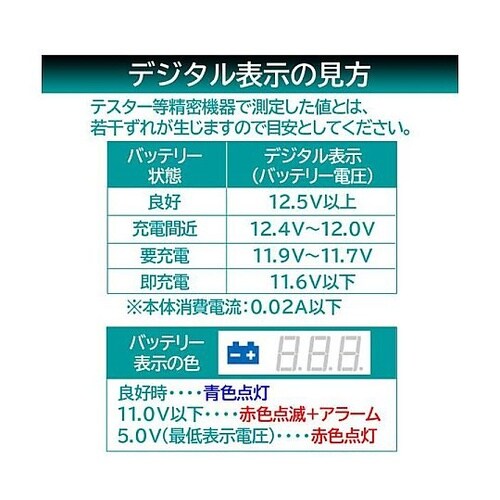 バッテリーチェッカー USBコンセント付