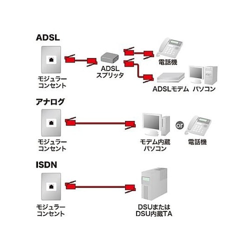 電話回線とモデム内蔵パソコン、モデム、FAX、電話機などを接続するケーブルです。 |