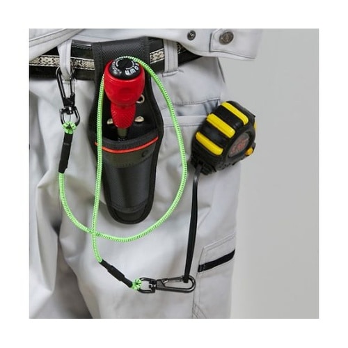 強すぎず弱すぎないゆるやかな伸びが特徴のロープです。伸びがゆるやかなため、長時間使っても腕が疲れにくく作業ストレス軽減に繋がります。高所作業時の工具落下防止に。工具などの紛失防止に。 |