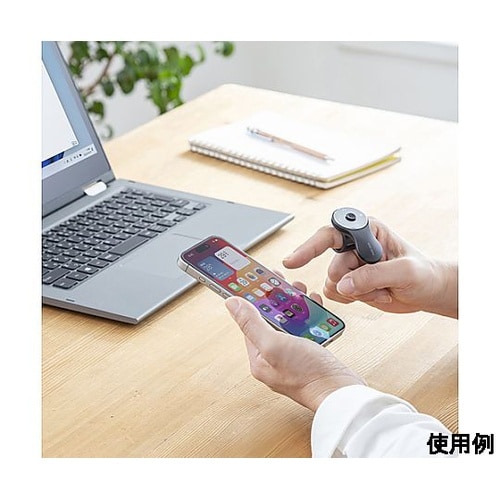 指に装着して親指で操作できるワイヤレスリングマウスです。すべての操作を親指1本でできます。パソコンから離れた場所や、マウスを置くスペースがない場所でも空中でスマートにマウス操作が可能です。 |